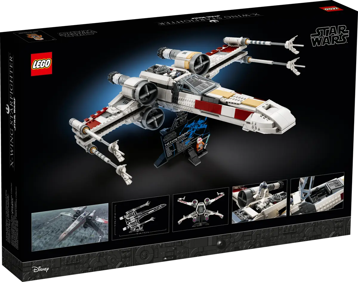 Le X-Wing mesure plus de 55 cm de long et inclut un socle à construire doté d’une plaque avec des données techniques sur le X-Wing et d’un espace pour la minifigurine LEGO de Luke Skywalker (nouvelle version de mai 2023) avec son sabre laser.